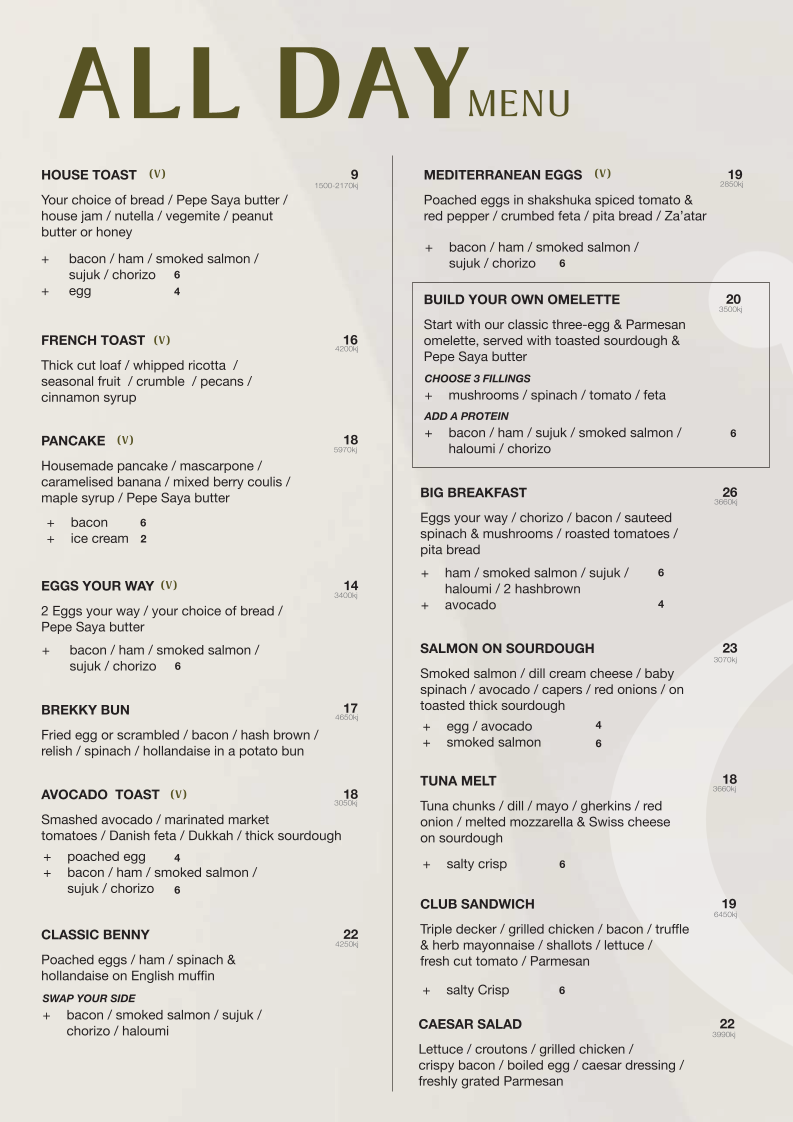 Start with our classic three-egg & Parmesan omelette, served with toasted sourdough & Pepe Saya butter